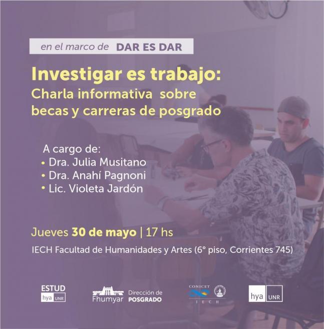 En el marco de la actividad Dar es dar Invitamos a la charla informativa sobre becas y carreras de posgrado a cargo de Julia Musitano, Anahí Pagnoni y Violeta Jardón.